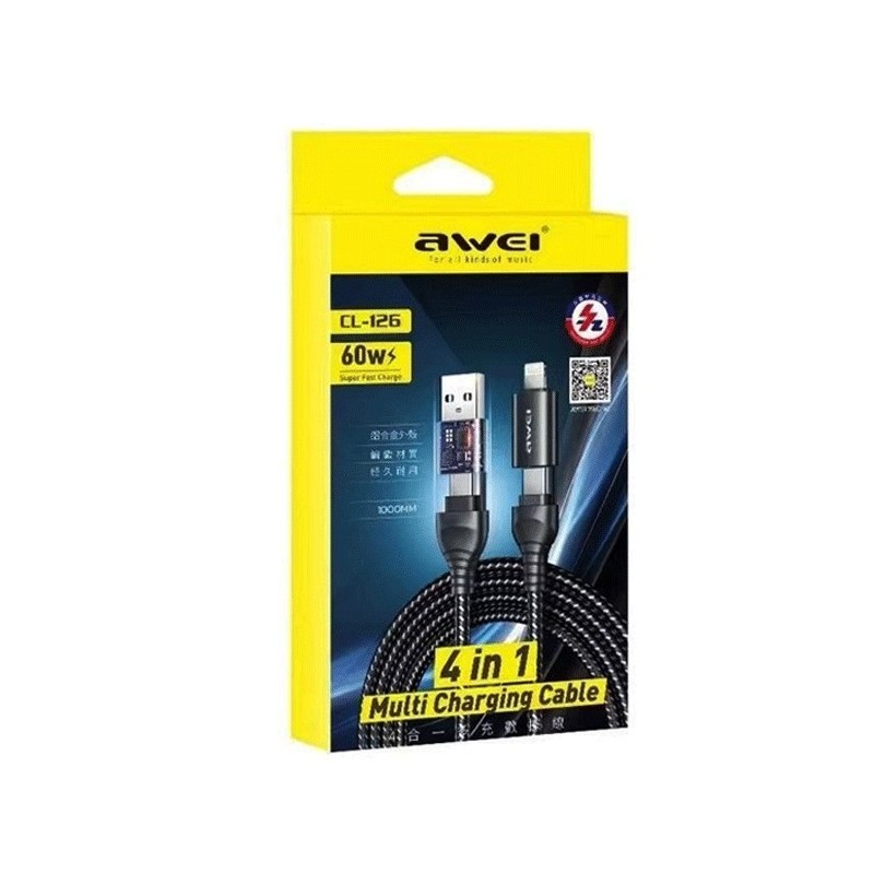 AWEI CL-126 Καλώδιο Φόρτισης και Μεταφοράς Δεδομένων 1Μ DATA CABLE 4 Σε 1 Multi Charging Cable 60W Τype C Σε Type-C (USB / Light