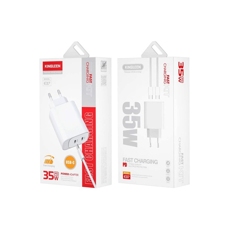 KINGLEEN E37 Φορτιστής κινητού / Mobile Charger 35W Με 2 Θύρες Type-C Και Καλώδιο Type-C Σε Type-C - Χρώμα: Λευκό