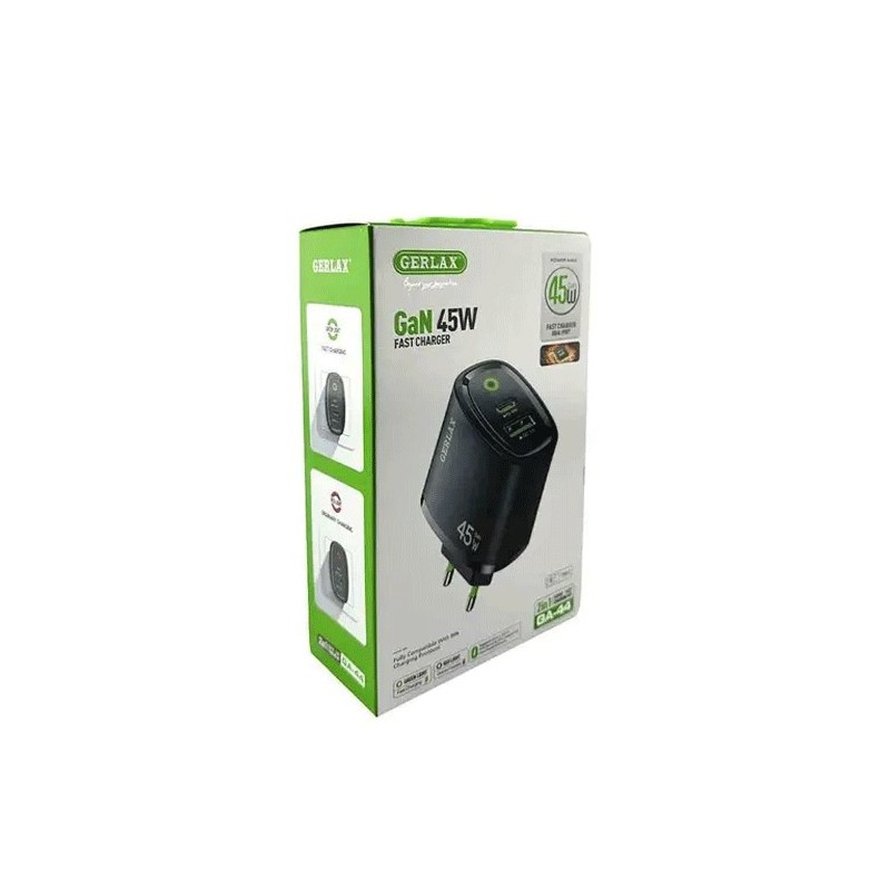 GERLAX GA-44S Φορτιστής GaN PD 45W Mobile Charger 1 Θύρα USB-A Και 1 Θύρα TYPE C - Χρώμα: Μαυρο