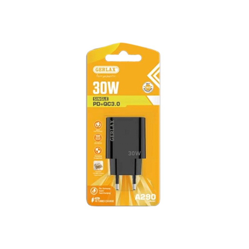 GERLAX A290 Φορτιστής κινητού / Mobile Charger 30W με 1 Θύρα USB-A Και 1 Θύρα Type-C - Χρώμα: Μαύρο