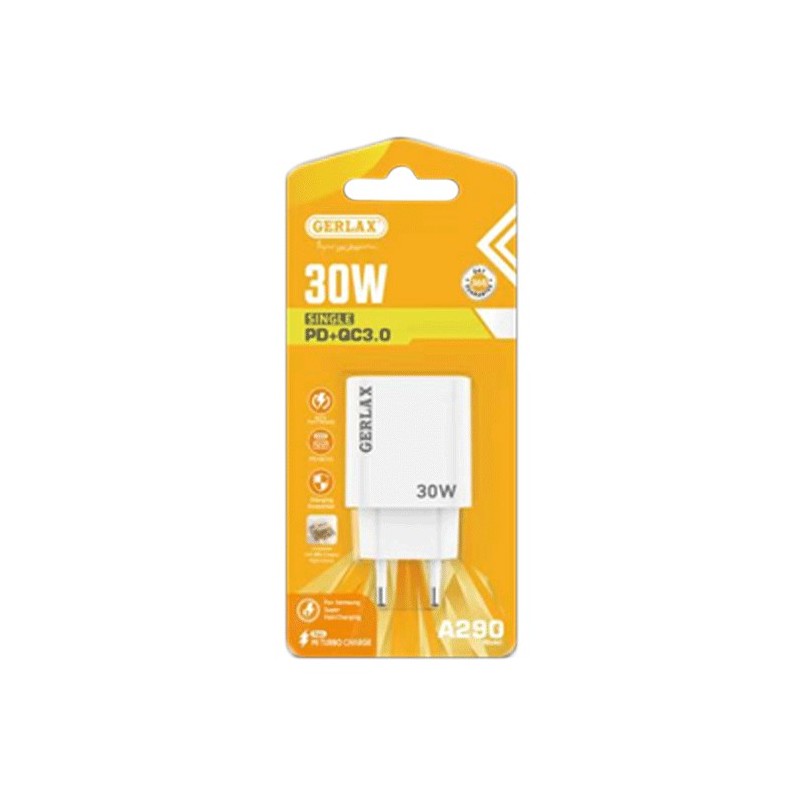 GERLAX A290 Φορτιστής κινητού / Mobile Charger 30W με 1 Θύρα USB-A Και 1 Θύρα Type-C - Χρώμα: Άσπρο