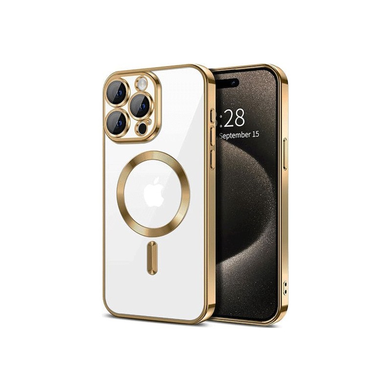 Magsafe Back Cover / Μαγνητική Θήκη HQ Για Iphone 15 Pro Με Τζαμάκι Κάμερας - Χρώμα : Χρυσό